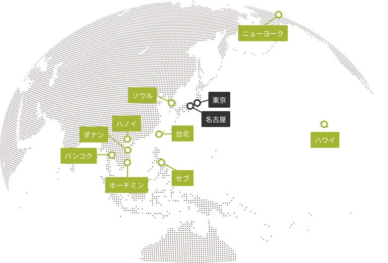 日本国内14拠点以外に9拠点を海外に展開しております。