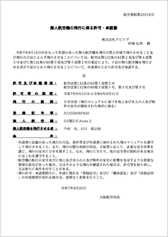 弊社は、国土交通省より日本全国を対象とした年間の包括飛行許可を