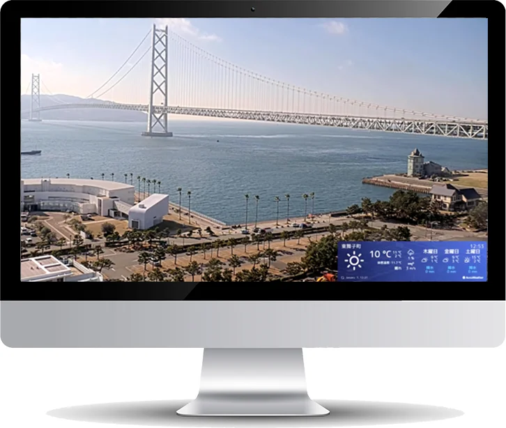 気象情報や案内テキスト、ロゴマークなどの各種情報を画面内に表示できます。