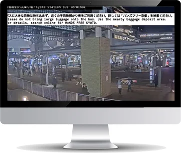 施設の訴求力アップライブ映像の画面内に、施設のロゴや案内テキストを表示できます。映像を見るだけで必要な情報を伝えられるため、販促を効率的に行えます。