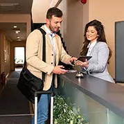 チェックイン時の館内のご説明はアビコンシェルジュにお任せ!アビコンシェルジュならスムーズにお客様のご案内をいただけます。