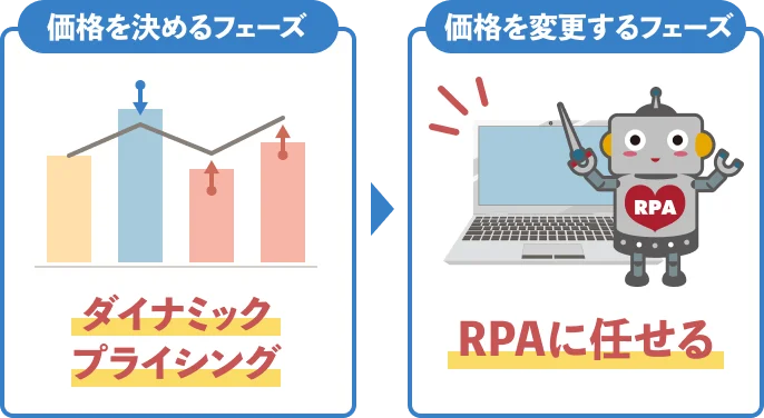 「価格を決めるフェーズ」は稼働率に応じて価格が変動するダイナミックプライシングに、「システムに価格を反映するフェーズ」はRPAロボットに任せて自動化することで、人ができる限界を超えた価格設定が可能になるとすれば、より効率的な運営が可能になります。