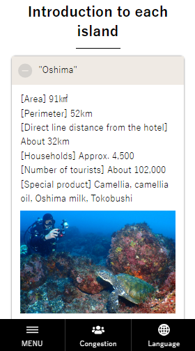 オーシャンフロントの宿であり、伊豆七島の島ごとの情報は、ロビーで寛がれるお客様とお話するきっかけとなりお楽しみ頂けております。