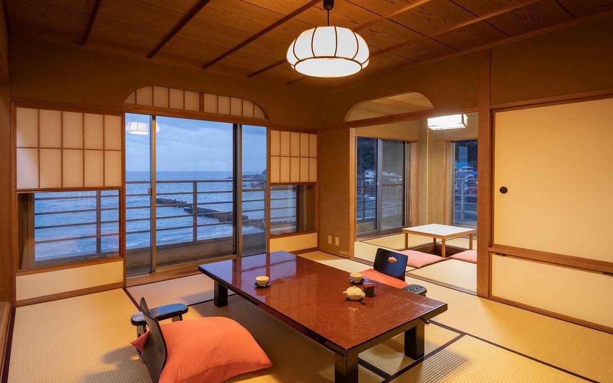 客室から眺める夕日は必見です。料理は伊豆の新鮮な海の幸を取り入れた会席が魅力です。