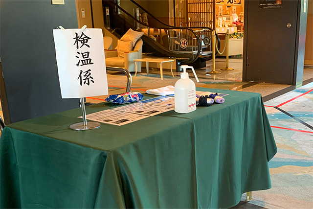 玄関でのお客様全員の検温やアルコールで手指の消毒、チェックイン時のボールペンもお一人ごとに交換しております。