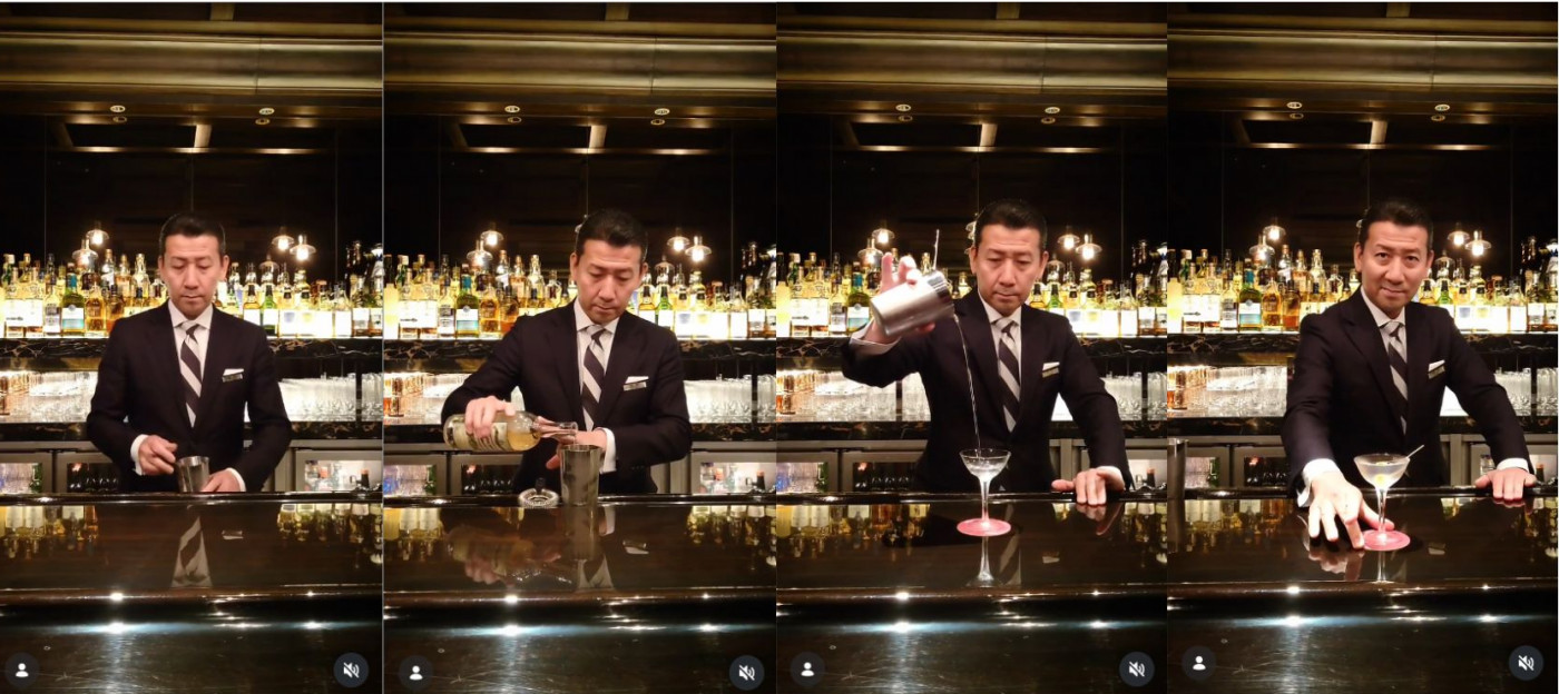 三脚などでカメラを固定し、人物とカクテルどちらも画角に入れて撮影。