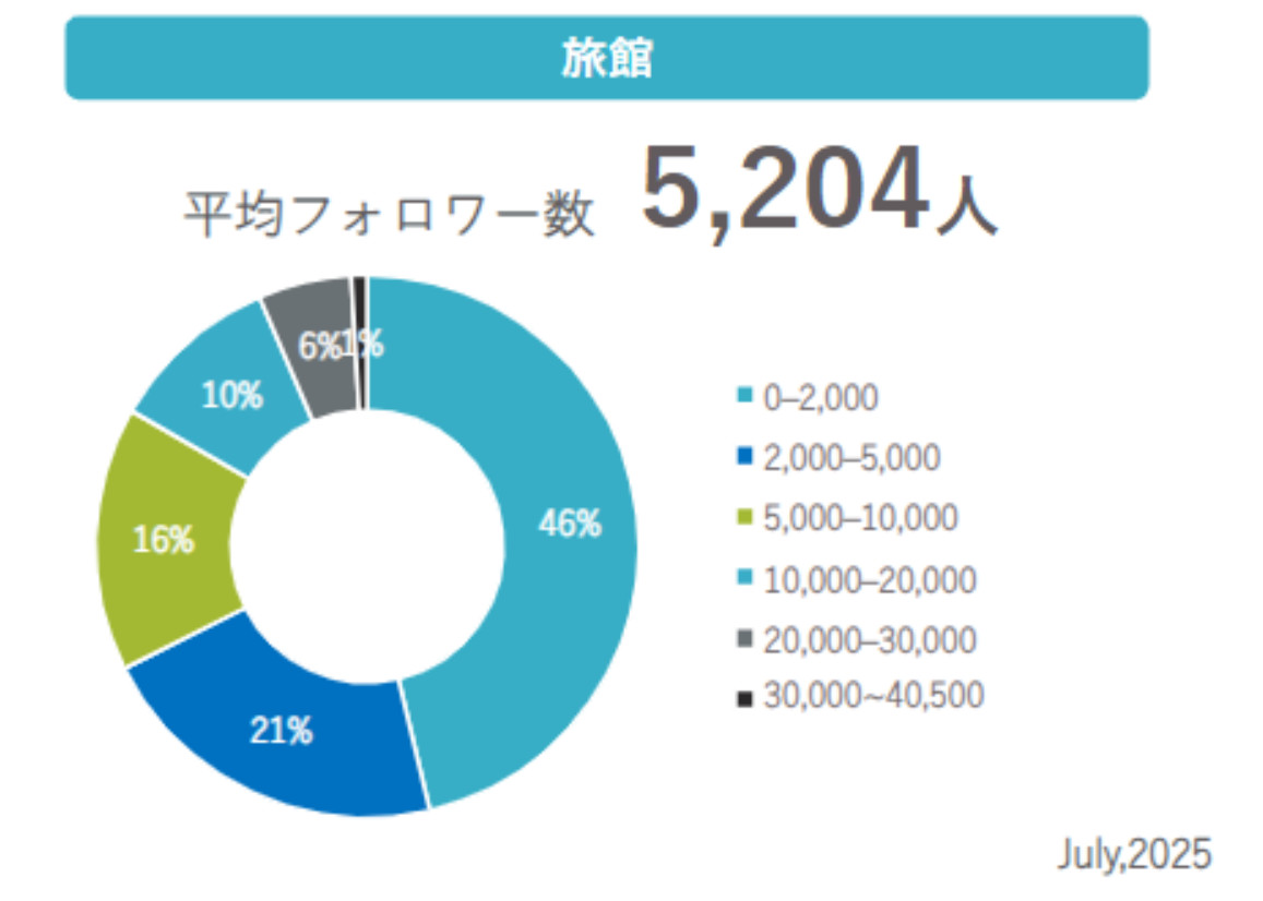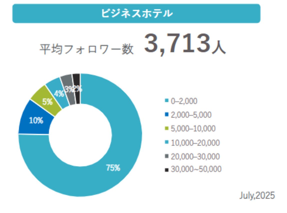 一方で、旅館やビジネスホテルにおいてもフォロワー1万人を超えるアカウントが登場しており、運用の工夫次第で新規フォロワーの獲得や認知拡大が十分に可能であることが分かります。