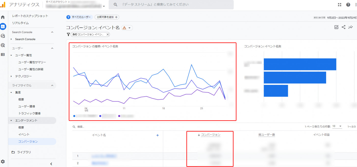 操作:レポート>ライフサイクル>エンゲージメント>コンバージョン