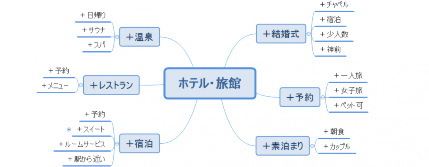 ホテル・旅館などを検索する目的によってキーワードの幅が広がっていきます。