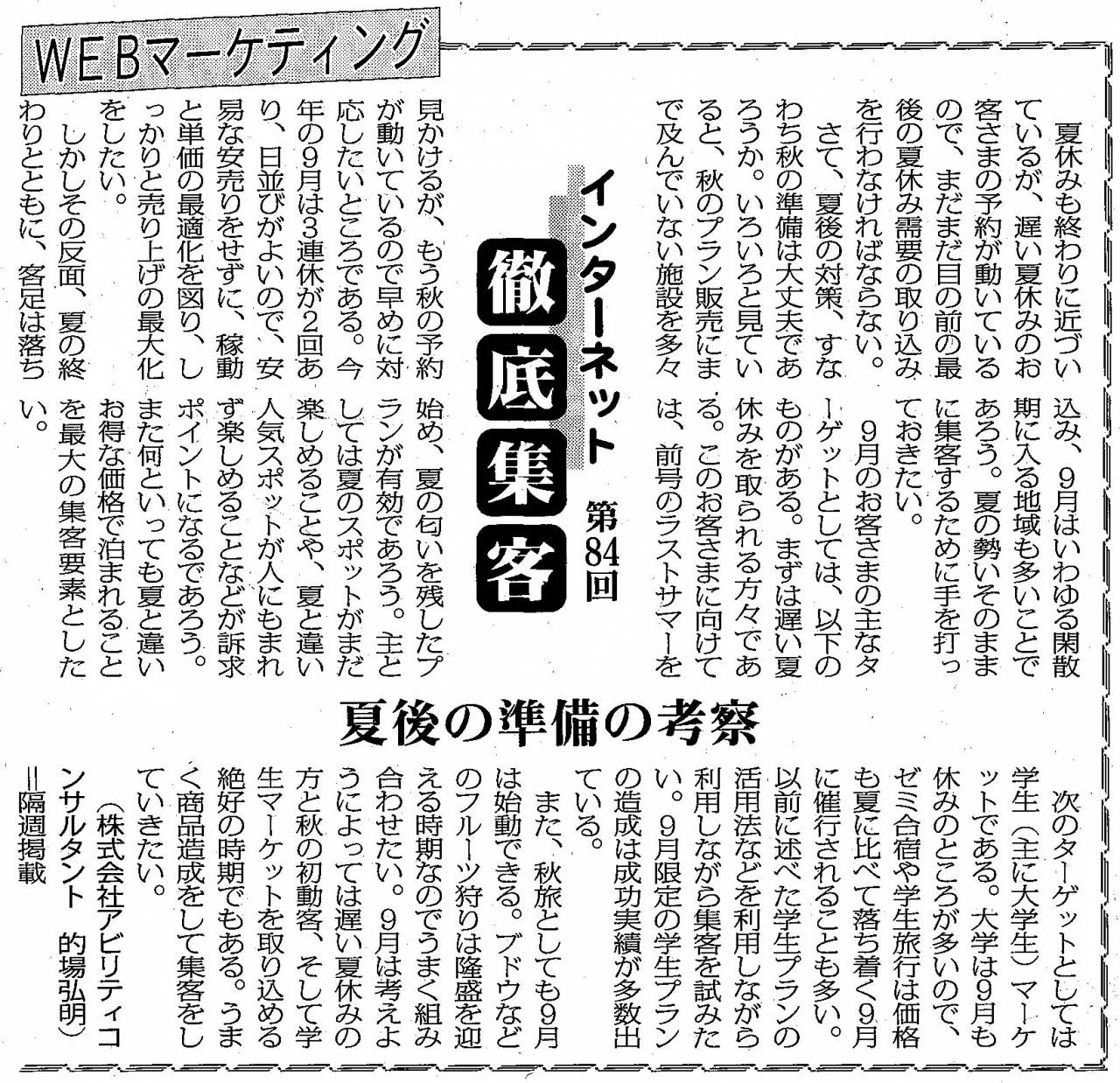 後半が弱い施設はまだまだお客様は動いているので、前号でご紹介したラストサマープラン等を駆使しながら、集客に努めて欲しい。