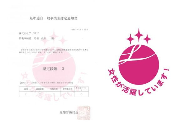 このたびアビリブは、厚生労働省が定める女性活躍推進制度において、