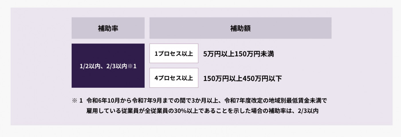 アビリブでは通常枠の「補助率:1/2以内」「補助額:1プロセス以上 5万円以上150万円未満」で交付申請を行っています。