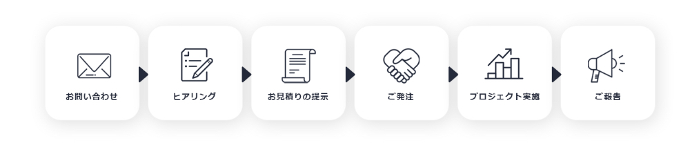 弊社ではヒアリングと過去の実績を参考に、キャンペーンやプロモーションの企画立案・施行・効果検証・レポートによる結果報告など、強力にサポートいたします。